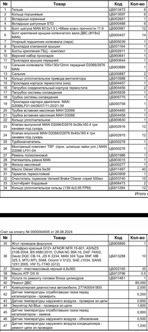 D2066LF63 V35 в 2024 году делали капиталку мотора в 2026 машина попала в ДТП и была разобрана по зч